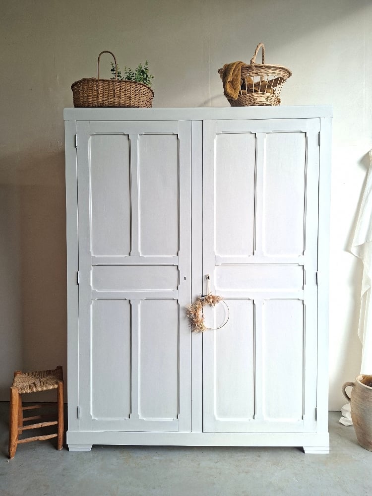 Restaurée, elle a été poncée, traitée puis peinte en blanc grège de la marque Liberon.