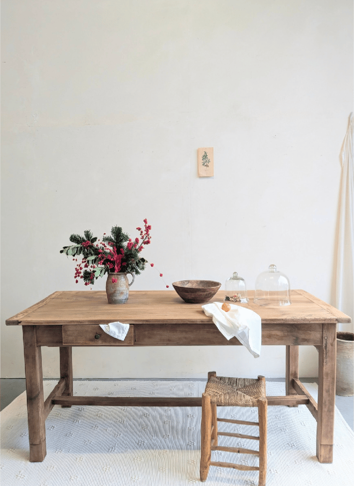 Parfaite pour les amoureux de matériaux naturels, cette table apportera immédiatement chaleur, âme et convivialité à une salle à manger ou une cuisine de style campagnard, bohème ou traditionnel. C’est une pièce prête à créer de nouveaux souvenirs, autour de repas partagés, de moments simples mais précieux. 🤍
