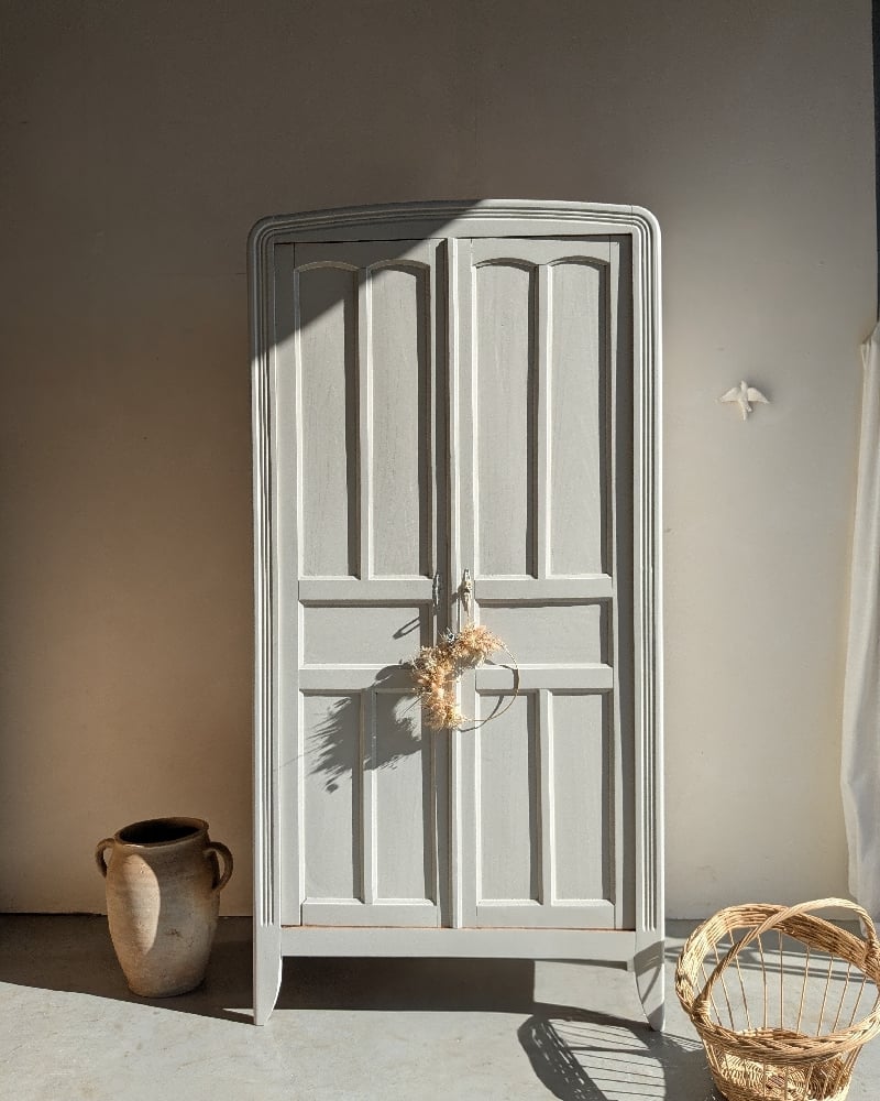 Apportez charme et élégance à votre intérieur avec cette armoire parisienne relookée, un meuble vintage unique et plein de caractère. Sobriété et chic se rencontrent dans cette pièce, idéale pour les amoureux de la déco intérieure authentique et du style brocante chic. 🤍
