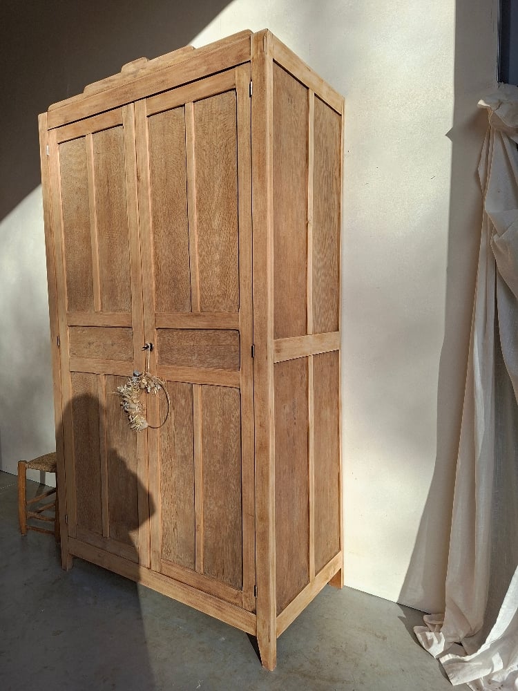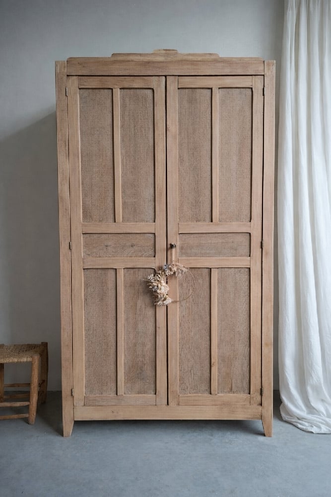 Cette armoire ancienne en chêne et hêtre massif fait partie de ces meubles que l’on ne croise presque plus aujourd’hui, et plus encore dans un état aussi remarquable.