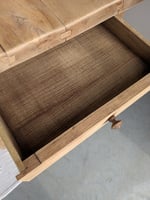 Elle a été entièrement restaurée : décirée, poncée, traitée puis protégée sur son plateau, par un vernis mat incolore spécial cuisine et salles de bain.