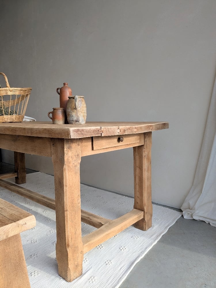 Authentique table de ferme ancienne au format généreux et de fabrication traditionnelle de qualité. Réalisée en bois massif chevillé. 🤍