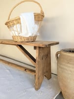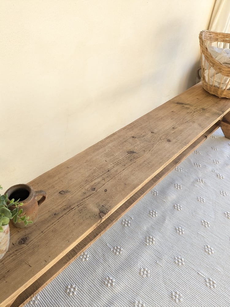 Authentique banc de ferme ancien en bois massif, poncé et traité pour préserver sa belle patine naturelle et garantir sa durabilité. Sa grande longueur (210 cm) et son charme rustique en font une pièce unique, parfaite dans une entrée, une salle à manger ou au pied du lit.