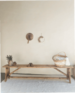 Solide et chaleureux, ce banc s’intègre facilement dans une décoration campagne chic, bohème ou vintage.